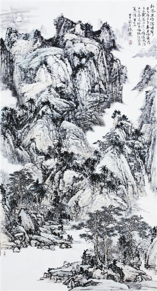 可这还不是乔德龙艺术世界的全部。他的山水、花鸟同样自成面目。山水画古意盎然,接续着宋元山水的正大气象。其山水画与人物画水平不相上下,他是自觉地去画山水画的,他认为,一个中国画家,不去探索一番作为国画巅峰的山水画,那就等于未登中国画的堂奥,而他的山水画由于注重文脉的传承,又有黔地、海南多处神奇山川的潜移默化,气势恢弘,若再参以写生富于更多变化,还可更上层楼;他的花鸟画,梅兰竹菊,寥寥几笔,尽得风神,骏马驰骋,颇具飞动之势。