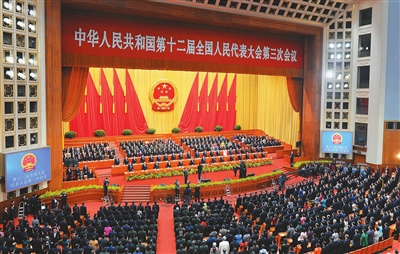 9时40分,张德江宣布:第十二届全国人民代表大会第三次会议闭幕。大会在雄壮的国歌声中结束。