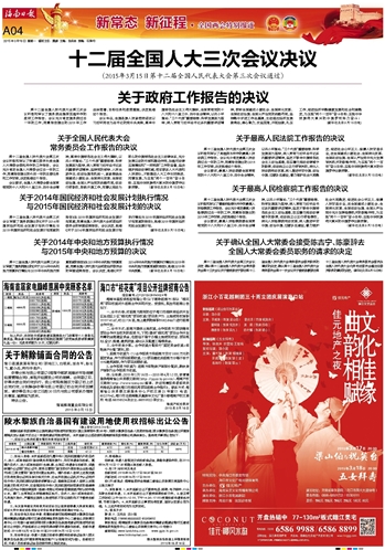 第十二届全国人民代表大会第三次会议审查了国务院提出的《关于2014年国民经济和社会发展计划执行情况与2015年国民经济和社会发展计划草案的报告》及2015年国民经济和社会发展计划草案,同意全国人民代表大会财政经济委员会的审查结果报告。会议决定,批准《关于2014年国民经济和社会发展计划执行情况与2015年国民经济和社会发展计划草案的报告》,批准2015年国民经济和社会发展计划。