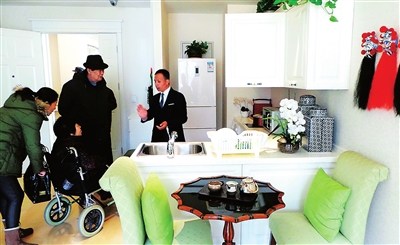 3月15日,工作人员在泰康之家·燕园养老社区样板间为前来咨询者详解养老社区的各项硬件设施。 近日,一座建筑面积达30万平方米、各类居家养老设施完备、服务理念高端的养老社区—泰康之家·燕园落户北京昌平,即将开业,吸引了京城百姓纷纷前往实地踏访考察。