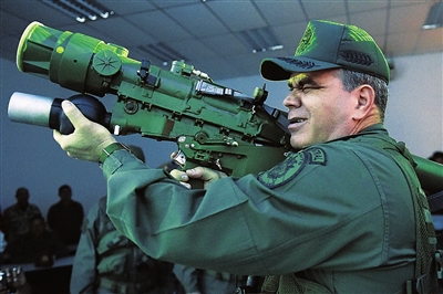 3月14日,委内瑞拉国防部长弗拉基米尔·帕德里诺·洛佩斯操作萨姆18地对空导弹。 新华社/法新