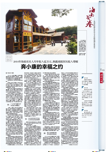 两年来,海南牢记习总书记的嘱托,抓好现代农业生产基地、经营体制机制、社会化服务体系建设这三个重点,推动传统农业向标准化、品牌化、产业化的现代农业转型升级。2014年,海南农民人均年收入直逼万元,达9913元,同比增长12.6%,跑赢了城镇居民收入增幅,也跑赢了GDP增速,500多万农民的笑脸,如花一样,绽放在琼州大地。
