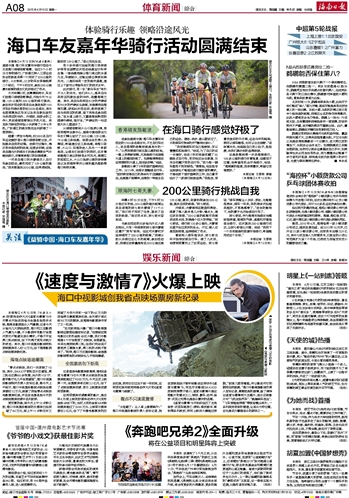 “太炫酷了!让人肾上腺素飙升!”海口中视国际影城负责人告诉记者,她在放映现场不断听到影迷这样评价《速度与激情7》,而且对该影城IMAX3D放映效果赞不绝口,速度与激情只是这部影片的看点之二,特技、豪车、动作、保罗·沃克之死等也是观众喜欢的话题。
