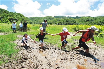 台湾屏东县东源湿地,游客进入沼泽湿地体验。 本报记者 张杰 摄