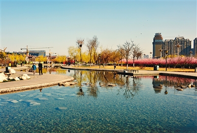 河北省迁安市的市民在龙形水系观光。 近日,河北省迁安市被住房和城乡建设部评为我国首批海绵城市建设试点城市之一,也是此次评审中唯一的县级市。自2000年以来,该市已在多个项目中运用海绵城市建设理念,包括滦河治理、三里河环境治理、黄台山公园、人民广场和龙形水系等工程建设。该市在2015至2016年还将投资44.934亿元,按照“渗滞为主、蓄排结合、净用相辅”模式,对老城区、城中村、新城区和建成区外的污水处理厂等多项工程进行改扩建。 “海绵城市”指城市能够像海绵一样,在适应环境变化和应对自然灾害等方面具有良好的弹性,下雨时吸水、蓄水、渗水、净水,需要时将蓄存的水“释放”并加以利用。 新华社发