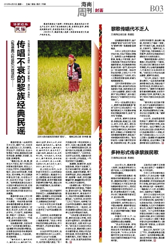 说起黎族民歌歌手,绕不开黎族“歌后”王妚大和“百灵鸟”黄婷丹等一批黎族歌曲演唱者。