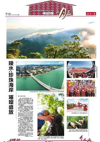 ■ 本报记者 程范淦陵水,我省东部黄金海岸线上唯一一个黎族自治县。在这块神奇的土地上,滔滔南海浪,悠悠陵水河,巍巍吊罗山,浇灌护卫着这1100多平方公里的土地。历代文人墨客、诗人画家都曾赞誉陵水:青山依伴绿水,绿水长浇青山。水秀山青景色美,明珠闪亮赛翡翠。