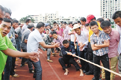 拔河比赛现场气氛热烈。