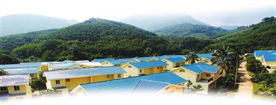 18栋颇具黎族特色的独栋别墅整齐排列,外部装修风格一致,门前小桥流水,村民们悠然自得地在家门前喝茶、聊天,脖子上挂着相机的游客在村里转悠。这是记者日前在白沙细水乡老周三村见到的景象。