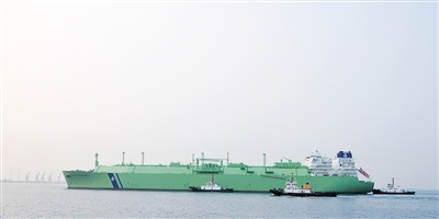 靠泊洋浦LNG码头的百慕大群岛籍“布鲁塞尔”LNG船舶。 本报记者 宋国强 通讯员 廖书剑 摄