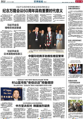 对于日本首相安倍晋三今天在亚非领导人会议上表示对二战深刻反省,洪磊表示,中方注意到有关报道。今年是二战结束70周年,国际社会普遍希望日本能够正视并反省侵略历史,以此推进与亚洲邻国的和解,取信于国际社会。中方希望日方能够顺应国际社会的正义呼声。