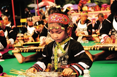 “山兰熟了,山兰熟了……”在今年琼中“三月三”主题晚会舞台上,琼中中学高二(27)班的黄莹莹身着漂亮的苗族服装,与同学李运圣合唱苗族歌曲《山兰熟了》,她质朴清纯的声音感动了观众。“在学习民歌民舞以后,我才知道原来黎族苗族文化是那么丰富精彩。”她告诉记者,她的理想是考上艺术学校,把民族文化保护好、传承好。
