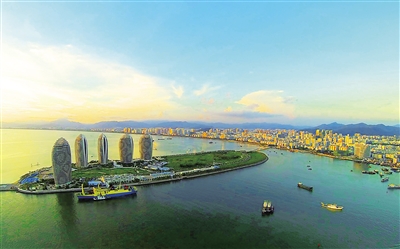 低空航拍三亚湾凤凰岛景观。 本报记者 张杰 摄