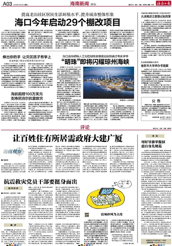 而属于续建的五源河片区、海秀棚户区(秀英段)、海秀棚户区(龙华段)、灵山镇片区(一期)、流水坡片区5个棚改项目推进已经如火如荼,今年将快马加鞭。此外,海口还有21个棚改项目也在今年启动的计划之列。
