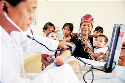 五指山市南圣镇红合村村民在卫生室里检查身体。 本报记者 王凯 摄
