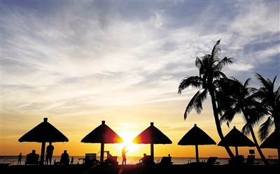 在乐东龙沐湾看日落。 本报记者 宋国强 摄