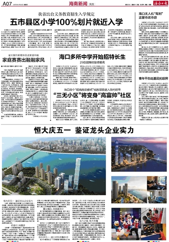 省教育厅基础教育处有关负责人表示,各市县要全面落实我省义务教育免试就近入学工作总体部署,全面实行小学划片就近入学、初中单校划片或多校划片入学,加快实现就近入学全覆盖。海口、文昌、琼海、屯昌、洋浦经济开发区也要于今年年内基本实现所有小学划片就近入学,并逐年提高当地热点初中就近入学的比例。