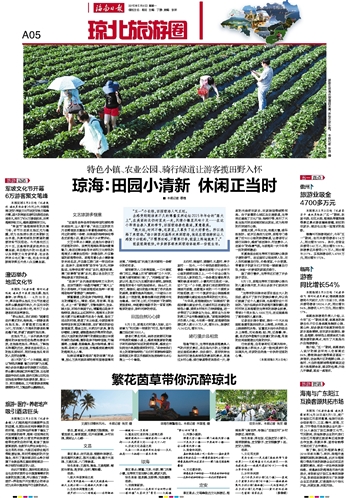 北仍村、南强村、美雅村、礼都村、亭子坡村……如今,一个个特色浓郁的特色小镇像一颗颗珍珠,镶嵌在琼海1710多平方公里的美丽田园之上;一个个农业公园为村庄注入新的活力;一条条散发着热带风情的绿道将城市、小镇和村庄连成一体。这个“五一”小长假,游客们走进美丽的田园城市琼海,在散落乡间的一个个美丽乡村里悠游,在一个个国家农业公园里感受新型城镇化建设给当地带来的巨大变化。