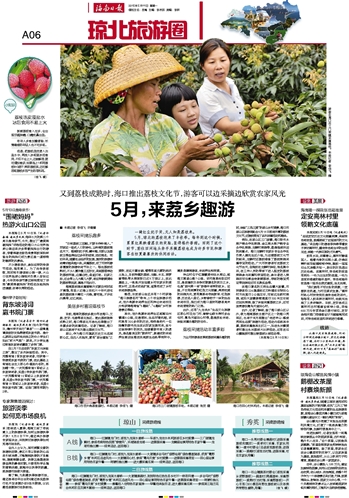 为让市民游客在享受荔枝采摘乐趣的同时,体验“三色三美”的琼山乡村美景,海口市琼山区旅游局配合5月15日即将开幕的荔枝文化节,还提前策划了系列采摘活动和路线。