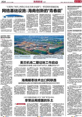 省工信厅厅长韩勇透露,为加强信息基础设施建设,有效满足互联网产业信息通信需求,我省将争取开通国家级互联网骨干直联点和区域国际互联网转接点,实现运营商网络本地高速交换,满足业务竞争和海外布局需要。实施“光网智能岛”工程,推进城镇光纤到户和行政村宽带普遍服务。加快4G网络全面部署和应用。大力推进无线海南免费WiFi建设,逐步实现全省重要公共区域的全覆盖,为互联网产业发展提供宽带、泛在、安全的信息高速公路。