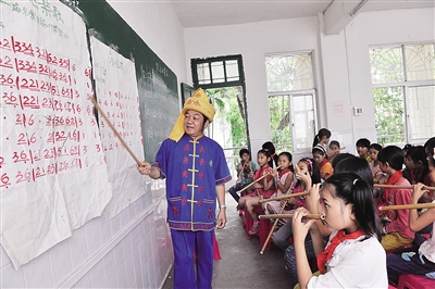 黄照安在保亭思源学校上黎族乐器欣赏课。本报记者 易建阳 摄