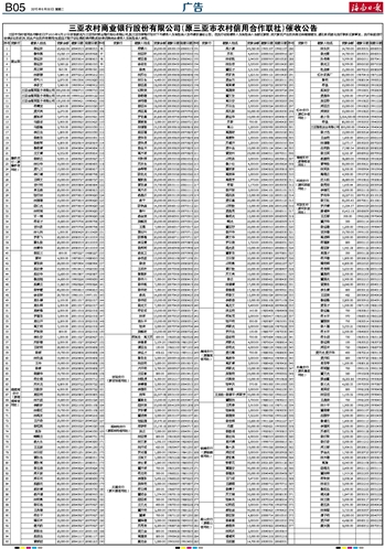 三亚农村商业银行股份有限公司(原三亚市农村信用合作联社)催收公告