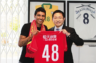 保利尼奥(左)即将穿上恒大48号战袍。小新发