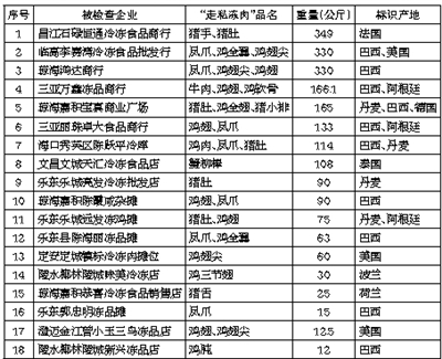 2015年4月第五次专项行动中查处销售、贮存“走私冻肉”的冻肉经营单位及冻库名单
