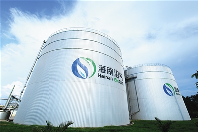 6月25日,澄迈海南车用沼气新能源应用示范项目沼气罐。 据了解,该项目是2008年中国科技部和瑞典能源署签订的中瑞生物能源合作示范项目,总投资30亿元,澄迈车用沼气项目是一期工程,目前项目日处理约500吨市政污泥、禽畜粪污、甘蔗渣等有机废弃物,日产出3万立方米车用沼气,可满足250辆公交车或750多辆出租车的燃料需求。