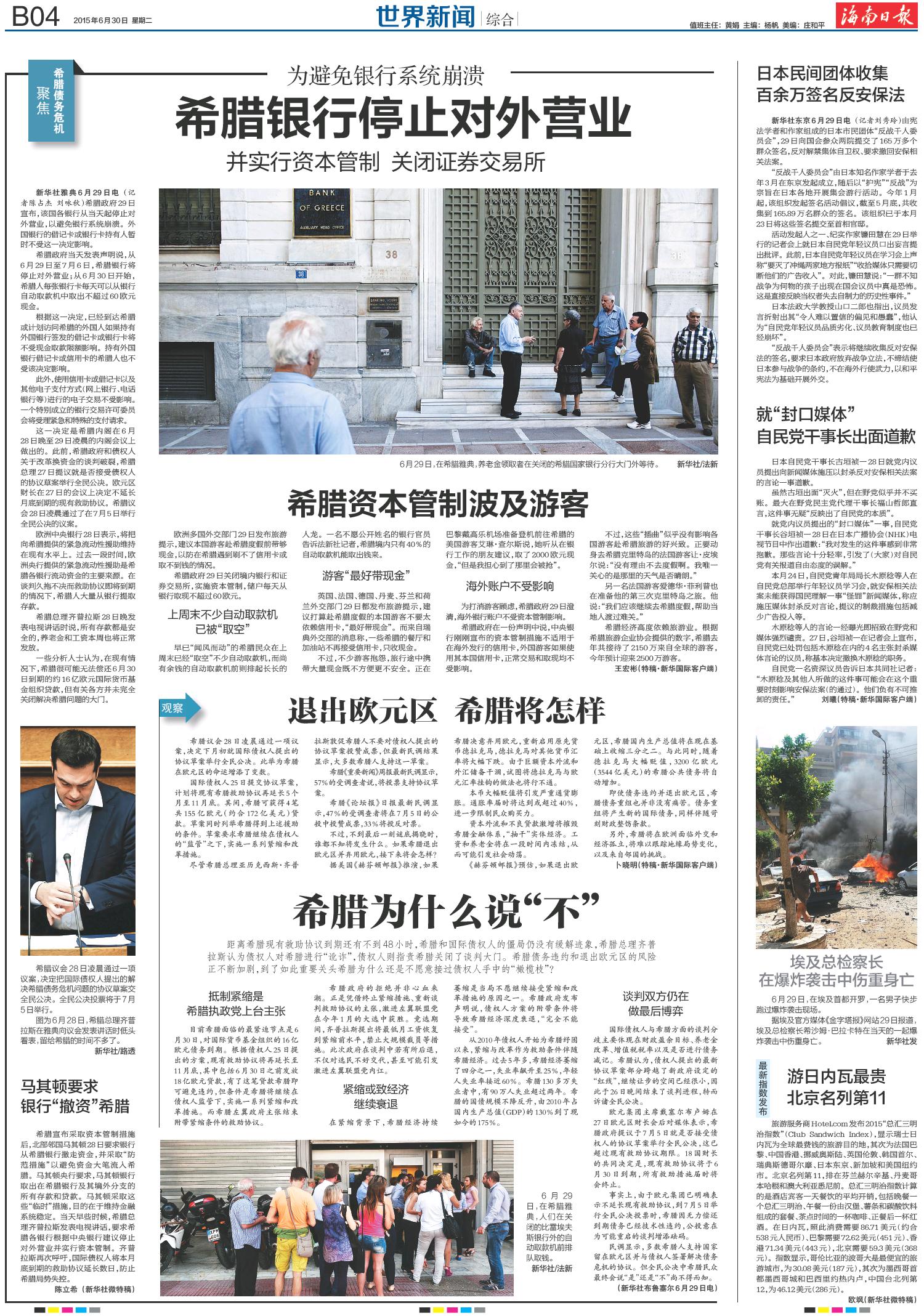 希腊资本管制波及游客