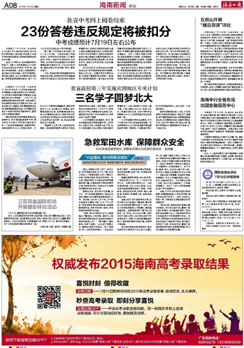 海南日报 ——7月11日起持续刊登2015年高考录取名单,值得纪念、永久保存。