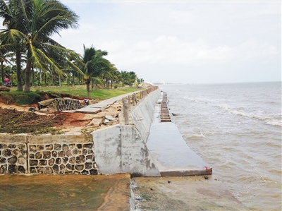 “威马逊”期间西海岸受损堤岸。 本报记者 刘贡 摄