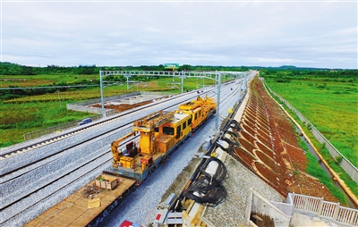 日前,一列工程列车在新建海南西环铁路澄迈段施工。据了解,海南西环铁路目前进入收尾工程,8月初开始全线静态验收,年底达到开通条件。