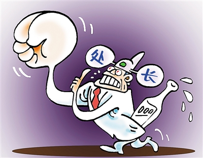 8月3日晚,南京电视台曝光了“南京一公务员酒后殴打他人”事件。事情发生在7月11日晚上,在南京林业大学培训中心的前台处,南京玄武区住建局副调研员陈爱平要住酒店,与前台服务员梅华发生冲突,并殴打梅华致其右肩软组织挫伤。据梅华介绍,陈爱平在动手时一直将“我是处长”这句话挂在嘴边。“我是处长”陈爱平,果然不是凡人,借着酒劲,挥拳就要对酒店女服务员动粗,这般勇猛,这般狂傲。现实中,就有个别官员平时克制欲望,装出一副道貌岸然的模样,但是,一经酒水撩拨,潜意识里的官贵民贱、高人一等的腐朽观念,便随时迸发出来,露出了大耍官威、欺压群众、横行霸道的本相,不但没有了公仆的亲民之态,就连半点斯文也顾不上了。对如此官员,就应严惩不贷。有道是: