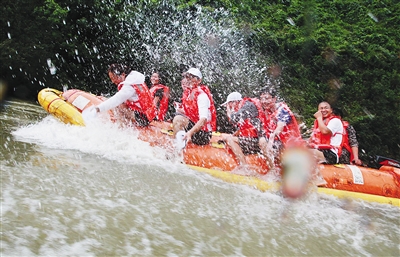 与开发之初单纯地让游客乘橡皮艇漂流不同。如今,郭凯的景区内旅游产品更加丰富,陆续设计出了探险、企业拓展训练、军训、野营等项目。