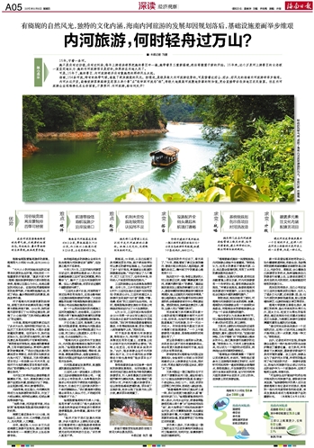 海南,154条河流,特有的热带气候,造就了两岸旖旎的风光。按理说,是极具做大内河旅游优势的,可是傍着这好山、好水、好风光的海南内河旅游却举步维艰。