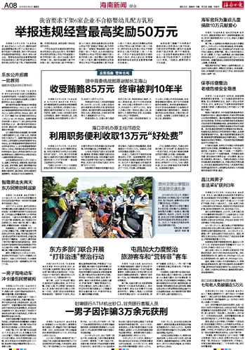 据介绍,儋州市公安局交警支队从即日起,在所属65公里高速公路范围内设置5个检查点,重点整治摩托车、电动车、三轮车、无证驾驶、拉泥土砂石等无遮盖篷布的飘洒货车和超载货车等违法违章行为。当日,5个检查点共查获各种违法违章车辆65起。