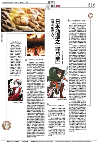 今夏,《大圣归来》突然让一度灰头土脸的中国动画片扬眉吐气了一回,在这之前,不少年轻人习惯性地把口水吐向国产电影,而把鲜花和掌声献给日本动漫。八月的日本,由动漫改编的真人版电影《进击的巨人》则成了最受瞩目的银幕大作。这两者之间本无太多联系,但日本动漫的深厚底蕴为其影视文化培育了肥厚的创作土壤,这是最令人艳羡的地方,也是中国动画的“后大圣归来时代”最令人忐忑的所在。回顾三十多年来,日本动漫对中国人的影响就能想象到这种“软实力”的可敬与可惧。“恣意妄为”的日本动漫