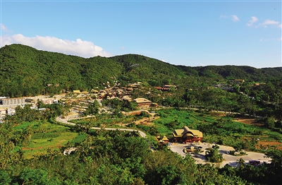 槟榔谷黎苗文化旅游区地处海南甘什岭自然保护区,景色优美,植被茂盛,绿化覆盖率达90℅,负氧离子丰富,被誉为“绿色景区”。旅游区在建设上充分考虑景观景点与绿化环境的合理规划,区内建筑与景观相互协调,建筑物周边以园林、绿化隔离带形成相应的缓冲区;功能性建筑选址隐蔽,外观美化,采用树木和园林绿化进行遮蔽。旅游区开发建设过程中注重原住民文化的保护,对即将消失的文化遗产如龙被、船型屋、百年谷仓群及黎族文身文化建立专项保护制度,对区内各种名树名木、重要珍稀药用植物开展有效合理的保护举措,保持景观质量的真实性和完整性,确保了旅游经济的可持续发展。