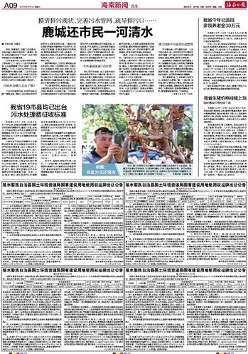 为督促各市县加快调整污水处理费征收标准,结合实施居民生活用水用气阶梯价格制度、实行工商业用水同价工作,省物价局、省水务厅、省人民政府督查室组成督导组于5月21日—27日对各市县实施居民生活用水用气阶梯价格制度、调整城镇污水处理费征收标准、工商业用水同价相关工作进行督导。经督导,各市县加快污水处理费征收标准调整工作,文昌、昌江、澄迈、陵水陆续出台污水处理费征收标准调整方案。目前,三亚、澄迈、昌江、陵水各类污水处理费征收标准调整至0.85元/立方米以上,提前实现国家发改委、财政部、住建部要求2016年达到的污水处理费征收标准。