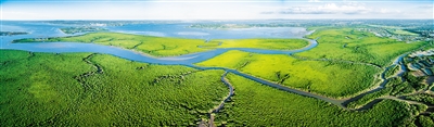东寨港国家级自然保护区绵延的绿色屏障美丽壮观。 本报记者 李幸璜 摄