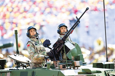 受阅的11式轮式装甲突击车(上图)为水陆两栖突击战车,主要用于快速部署、要域夺控和地面突击,是陆军快速反应力量的主战装备。