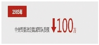 1985年6月4日,在北京举行的中央军委扩大会议上,中央军委主席邓小平宣布:中国政府决定军队减少员额100万。