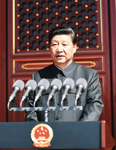 9月3日,纪念中国人民抗日战争暨世界反法西斯战争胜利70周年大会在北京隆重举行。中共中央总书记、国家主席、中央军委主席习近平发表重要讲话。新华社发