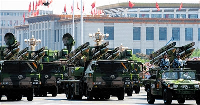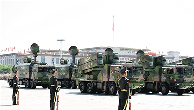 地空导弹第二方队展示的是红旗12地空导弹和红旗6弹炮系统。红旗12地空导弹是我军新型中高空防空武器,红旗6弹炮系统是我军新一代末端防御武器系统。