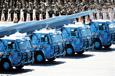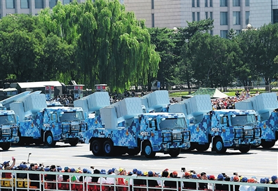 这是海红旗-9远程舰空导弹方队接受检阅。 新华社记者 陈晔华 摄