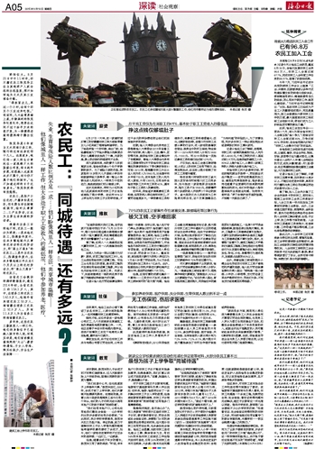 多年来,这些农民工像城里人一样工作,他们的身影似乎已经融入城市的人流,而现实却是,他们面前横亘着难爬的“大山”:薪资待遇低、子女入学难、购买社保少、安全生产没保障……