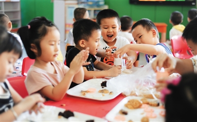 9月24日,海南国科园实验幼儿园大、中班的小朋友在老师带领下自己动手制作月饼,然后将月饼献给父母和老师品尝。这些有趣的活动提高了小朋友的动手能力,也培养了他们的感恩之心。本报记者 苏建强 摄