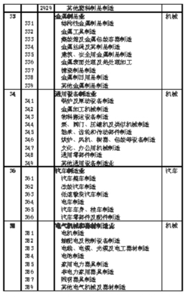 轻工、纺织、机械、汽车四个领域重点行业范围