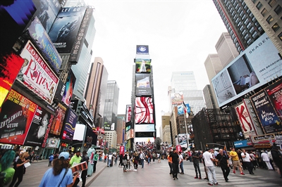 美国纽约时报广场大屏幕上正在播放展示中美文化交流的视频。 纽约时报广场大屏幕22日滚动播出中国人民对外友好协会展示中美文化交流的视频,获得广泛好评。视频内容包括国际象棋与中国象棋对弈,以及中国人与美国人切磋茶道、书法、舞蹈等。 新华社记者吴瑕 摄
